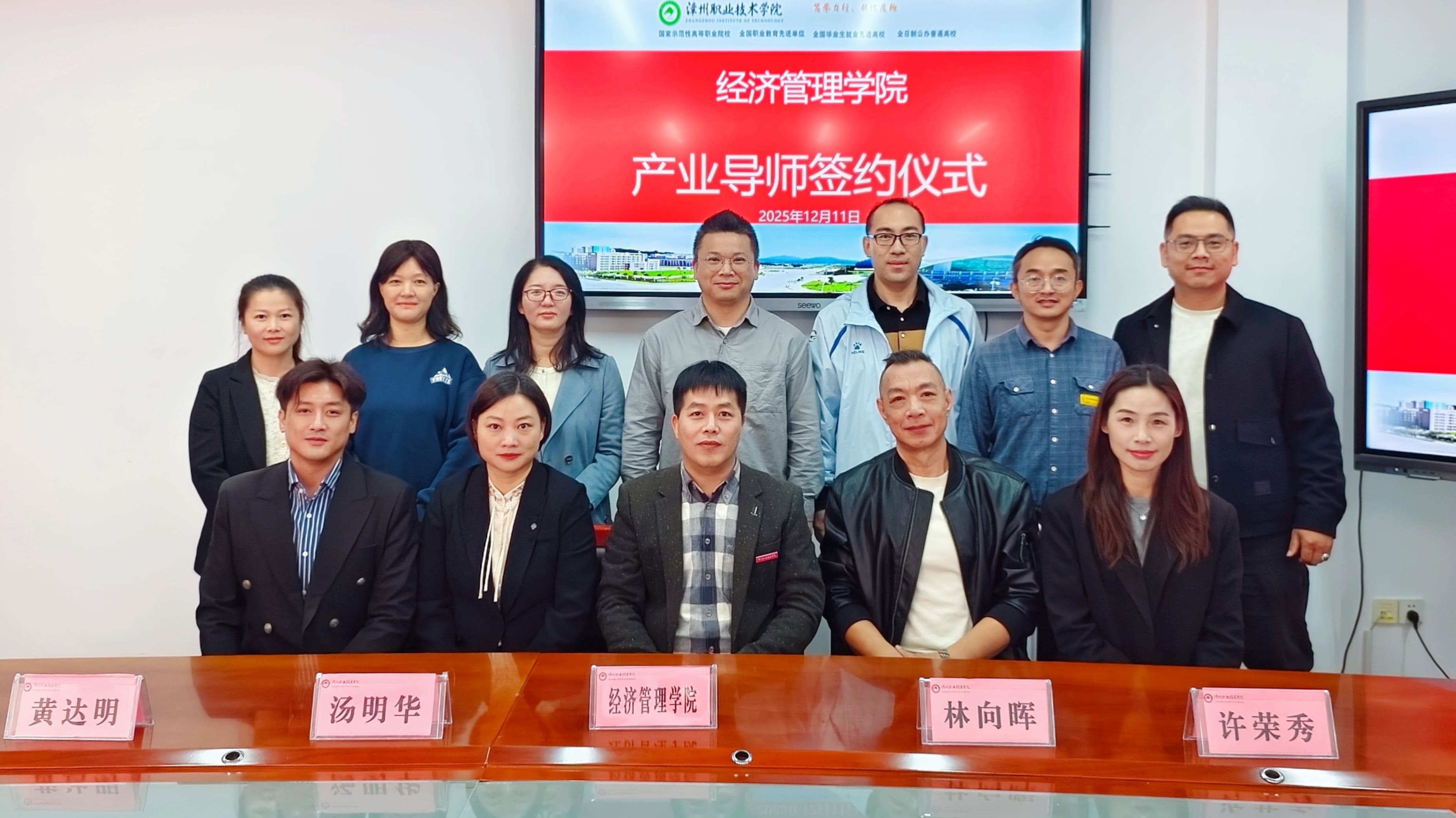 12月11日上午,漳州职业技术学院经济管理学院成功举办产业导师座谈会暨签约仪式。根据《中共漳州市委人才工作领导小组关于印发〈漳州市“产业导师”评选方案〉的通知》精神,纽什达集团董事长黄达明等多位行业专家获聘为漳州市教育局指派的漳州职业技术学院产业导师。
